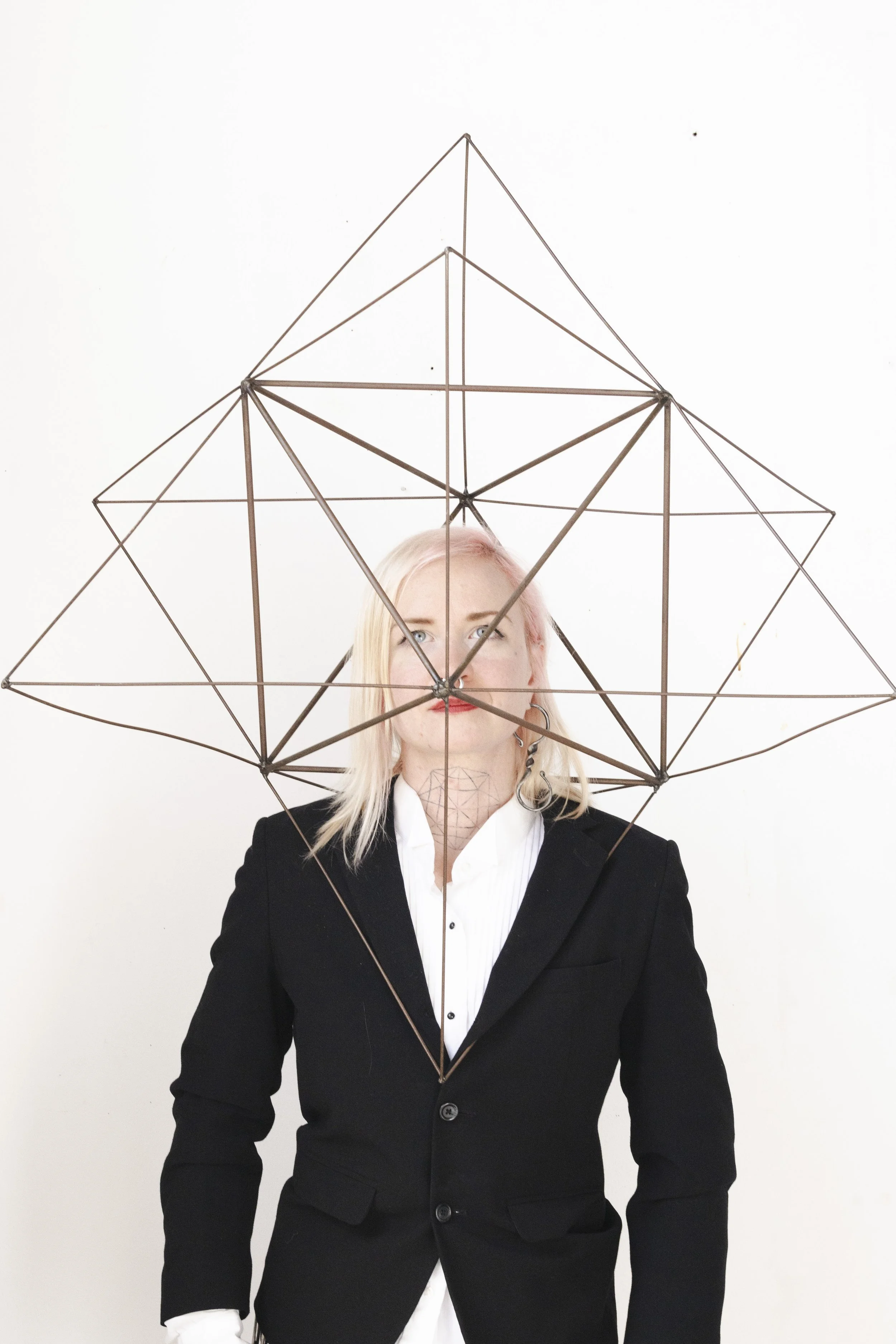 As a welding, painting, and tattooing artist, my work is a constant manipulation of the physical: metal, paint, ink, and bodies. While my hands bend, heat, and brush, my mind hovers in geometries. Plato’s inquiries into the timeless perfection of imagined geometric shapes, and into how geometries might lie behind all nature, inspire me to make objects that (though necessarily imperfect because they will never have perfect straight edges, and must eventually erode) tease our minds toward the perfect. The objects I make — always imperfectly embodying perfection — ask viewers to drift within that gap between the non-physical, conceptual realm and our tangible, sensory experience.